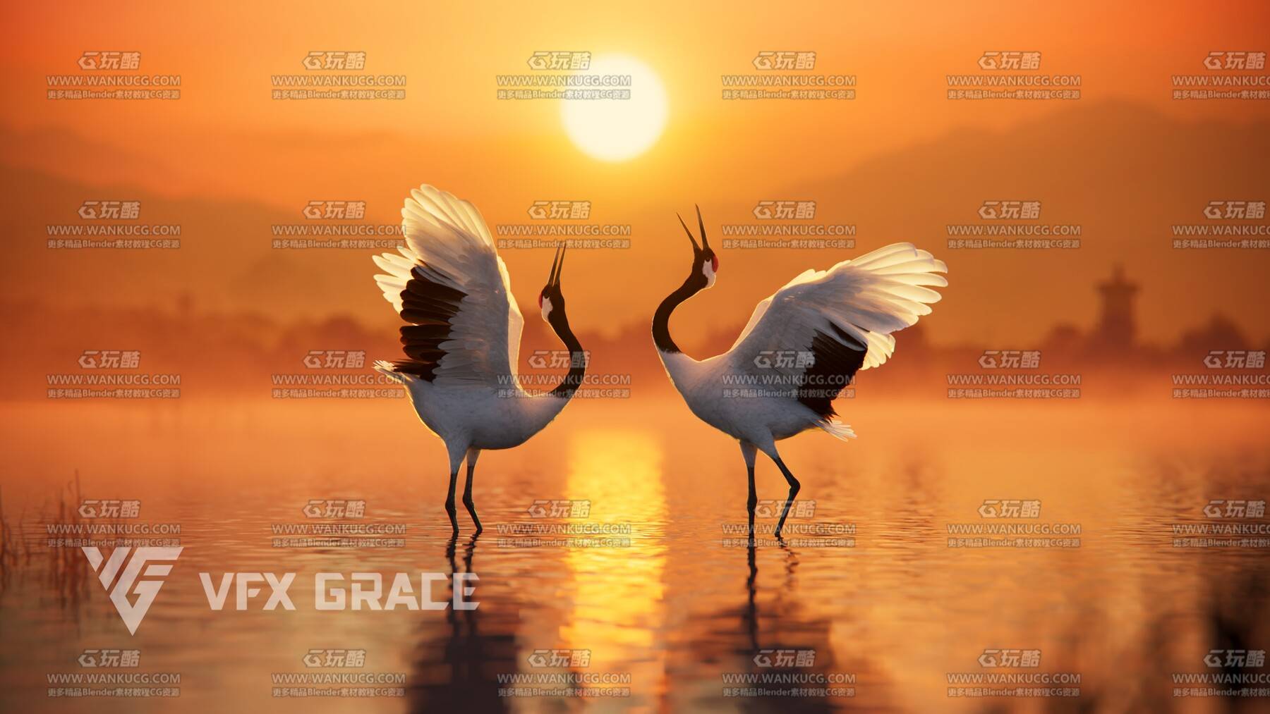 电影级VFX动画高精度丹顶鹤仙鹤Blend模型